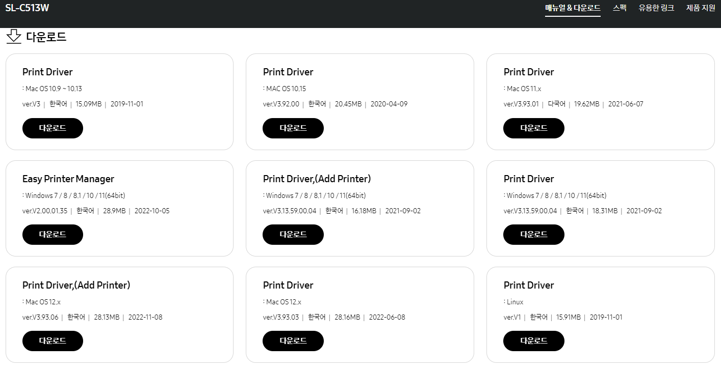 삼성SL-C513W 프린터 드라이버 다운로드